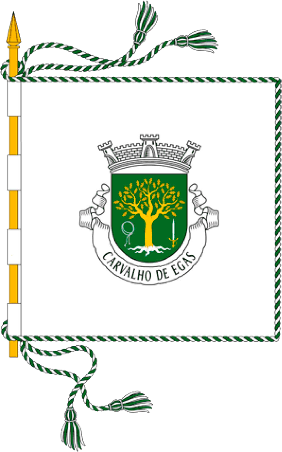 Brasão: escudo peninsular de verde, com um carvalho de ouro, arrancado de prata e realçado de negro, entre um baraço de prata, realçado de negro, à dextra, e uma espada de prata, desembainhada, com a ponta para cima, empunhada de ouro, à sinistra.
